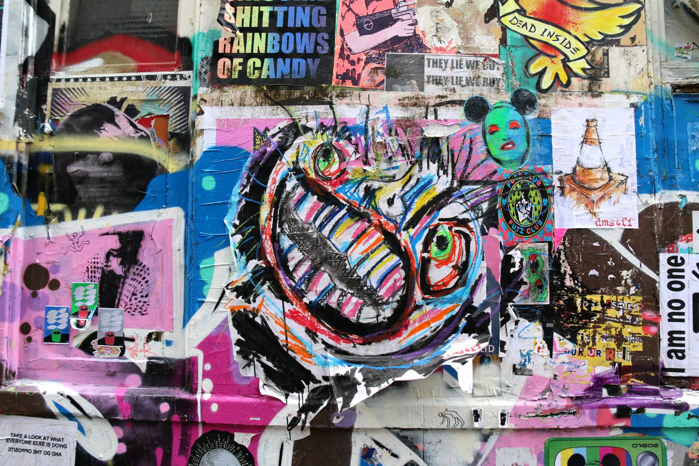 There are as many addictions as the varied graffiti on this wall in London’s Shoreditch, including alcohol, sex, work and people. Life traffic is stressfully fast with daily platform overload, no wonder we reach out for release.