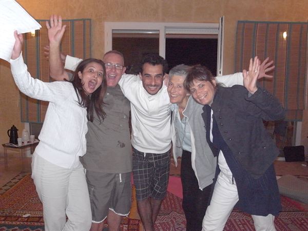 Here is the final goodbye shot of the Trainer, Organiser/Producer and assistants of the Rebirthing Weekend in a Beach House right on the beach in the smart resort of Bouznika, a 45 min drive from Casablanca city, and some other memories of what took place.