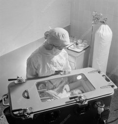 Leaving me there he ran to the maternity hospital, ( luckily in our road ) leaving me on the table with cord unfurled & uncut, but a 5 min run, and he returned in an ambulance that put me in an incubator for 6 weeks with no human hands touching me, including my parents for less risk of infections.